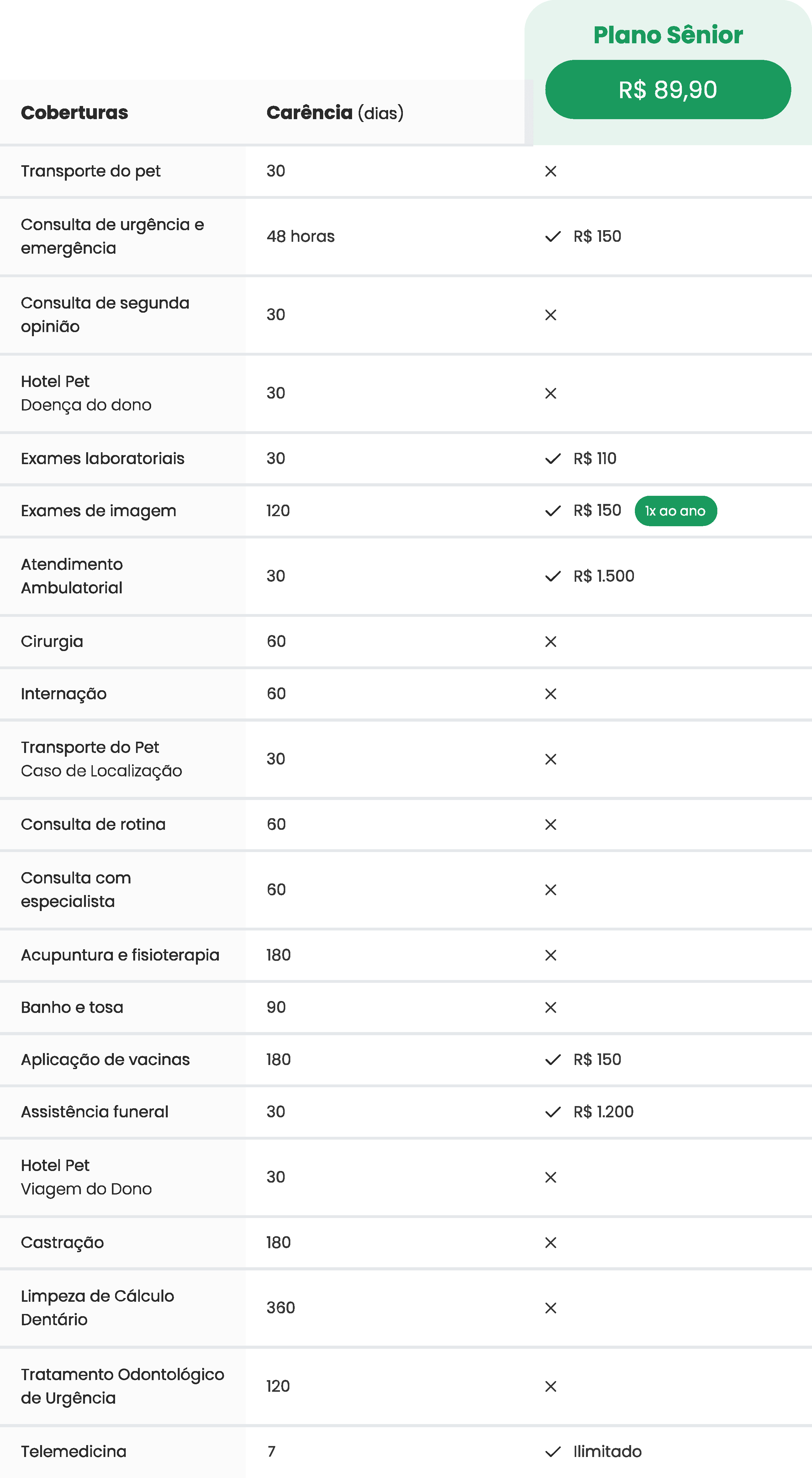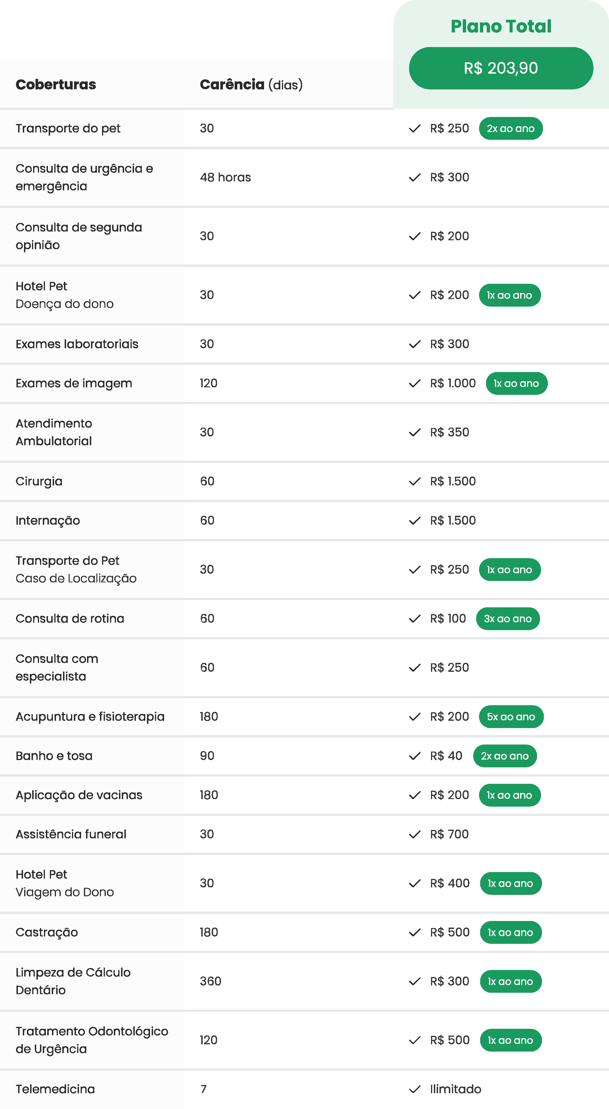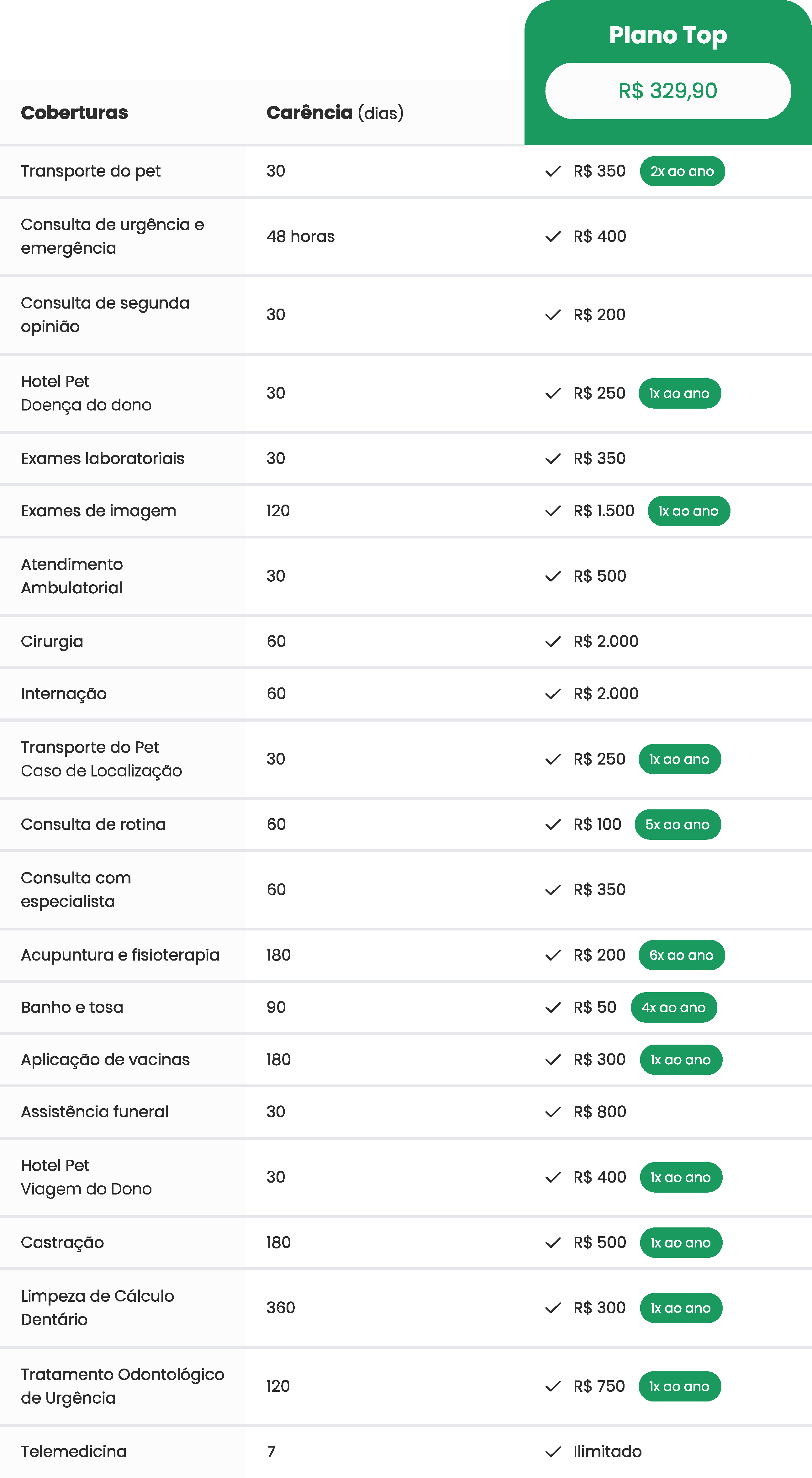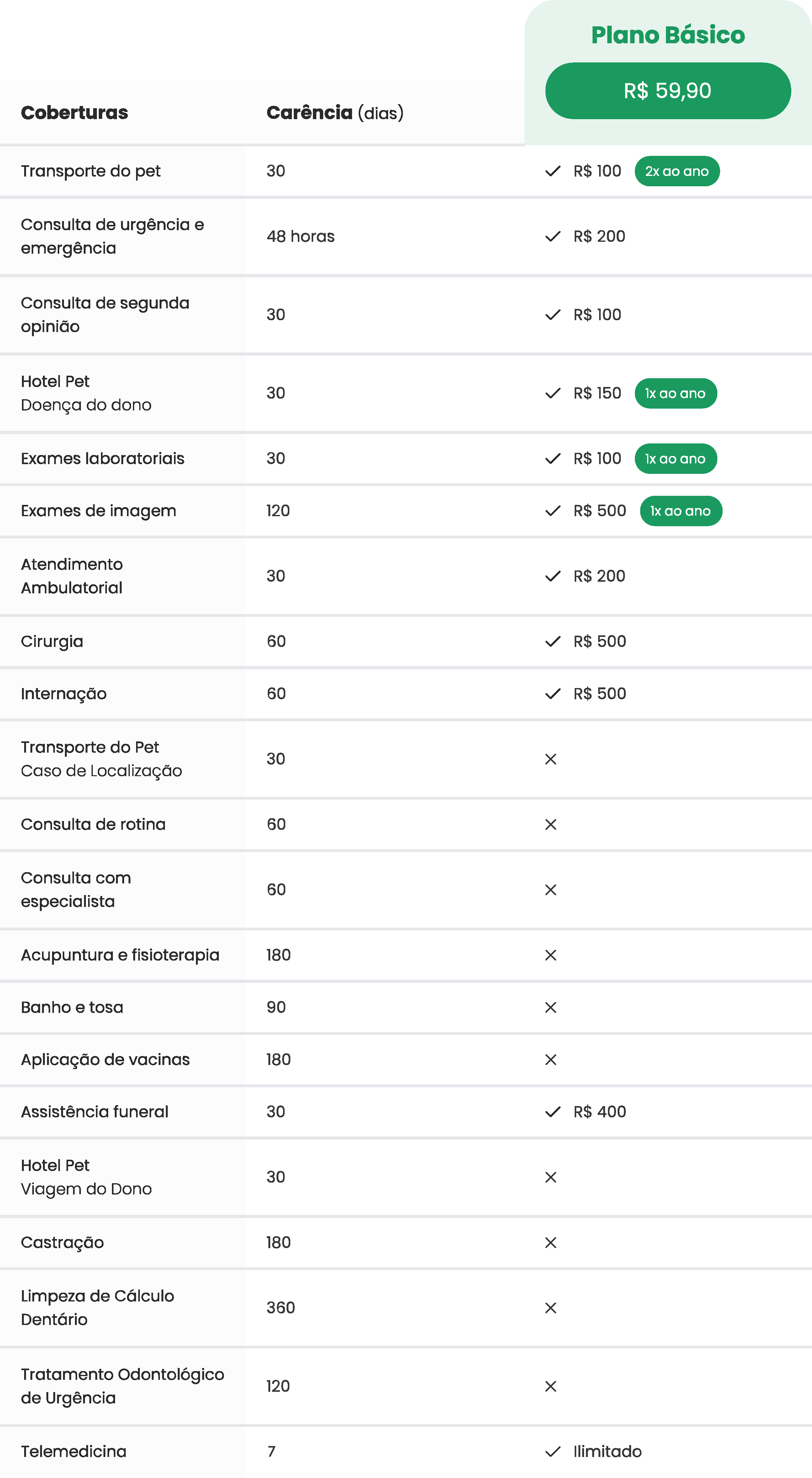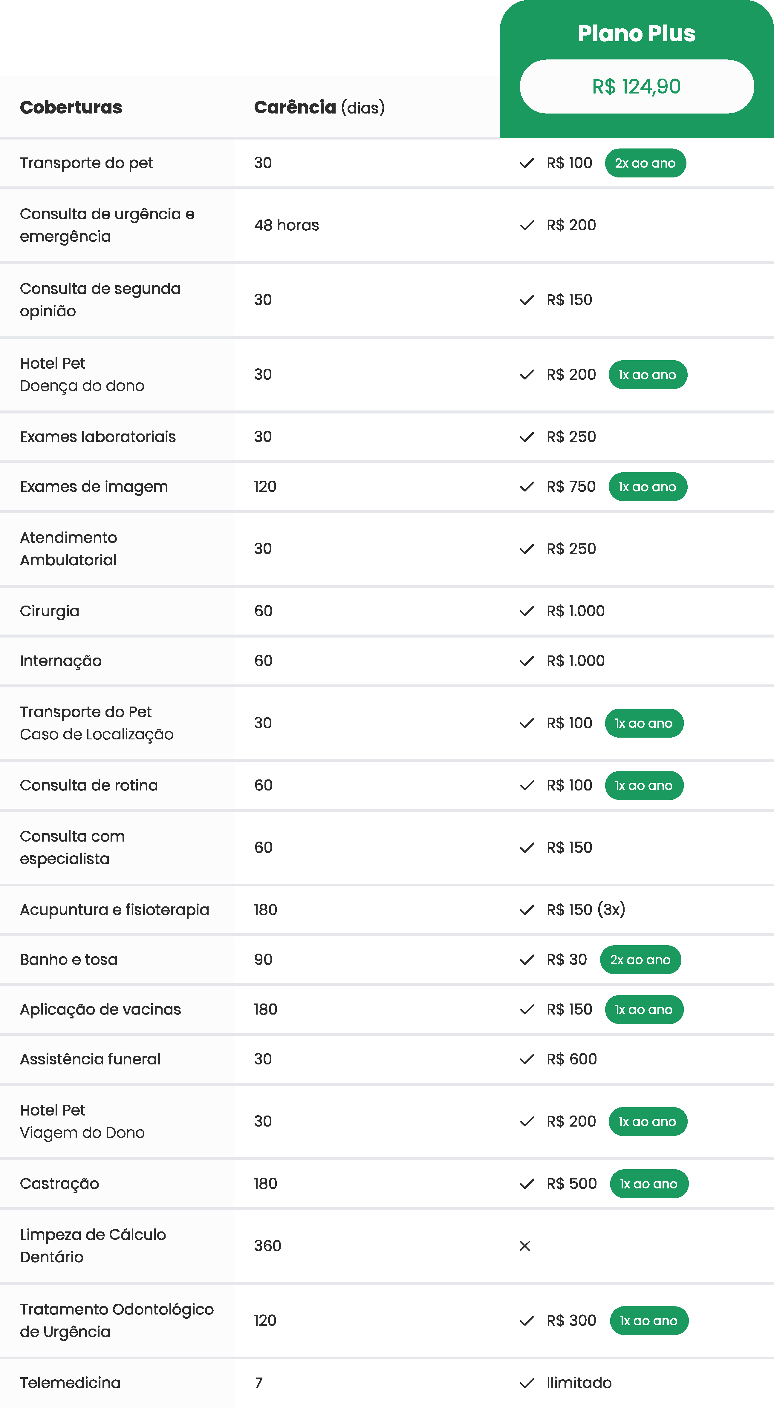 É só comparar os planos e as regras que você vai perceber qual melhor plano para a sua necessidade. Receba 100% dos custos com veterinário de volta e o melhor, sem coparticipação.